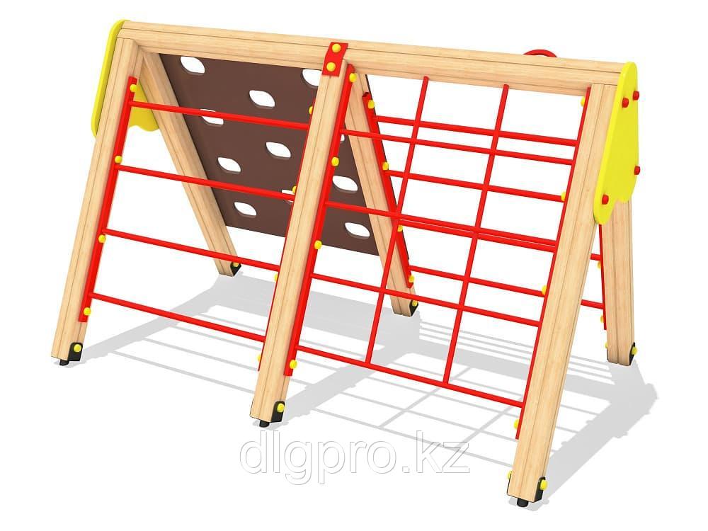 Материалы: металл, водостойкая ламинированная фанера, цепь, пропиленовые перекладины, канат полиамидный тросовый, канат с узлами, порошковая краска, оцинкованный крепеж, пластиковые заглушки.